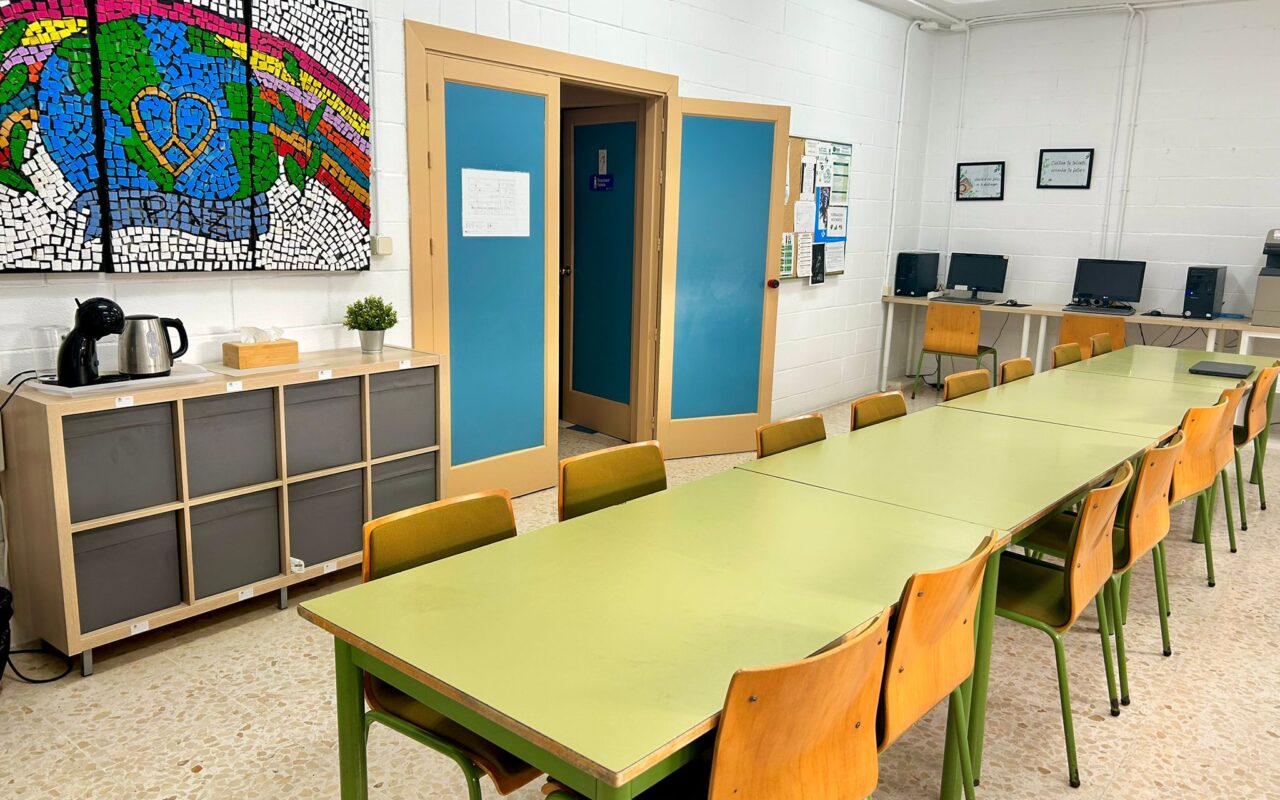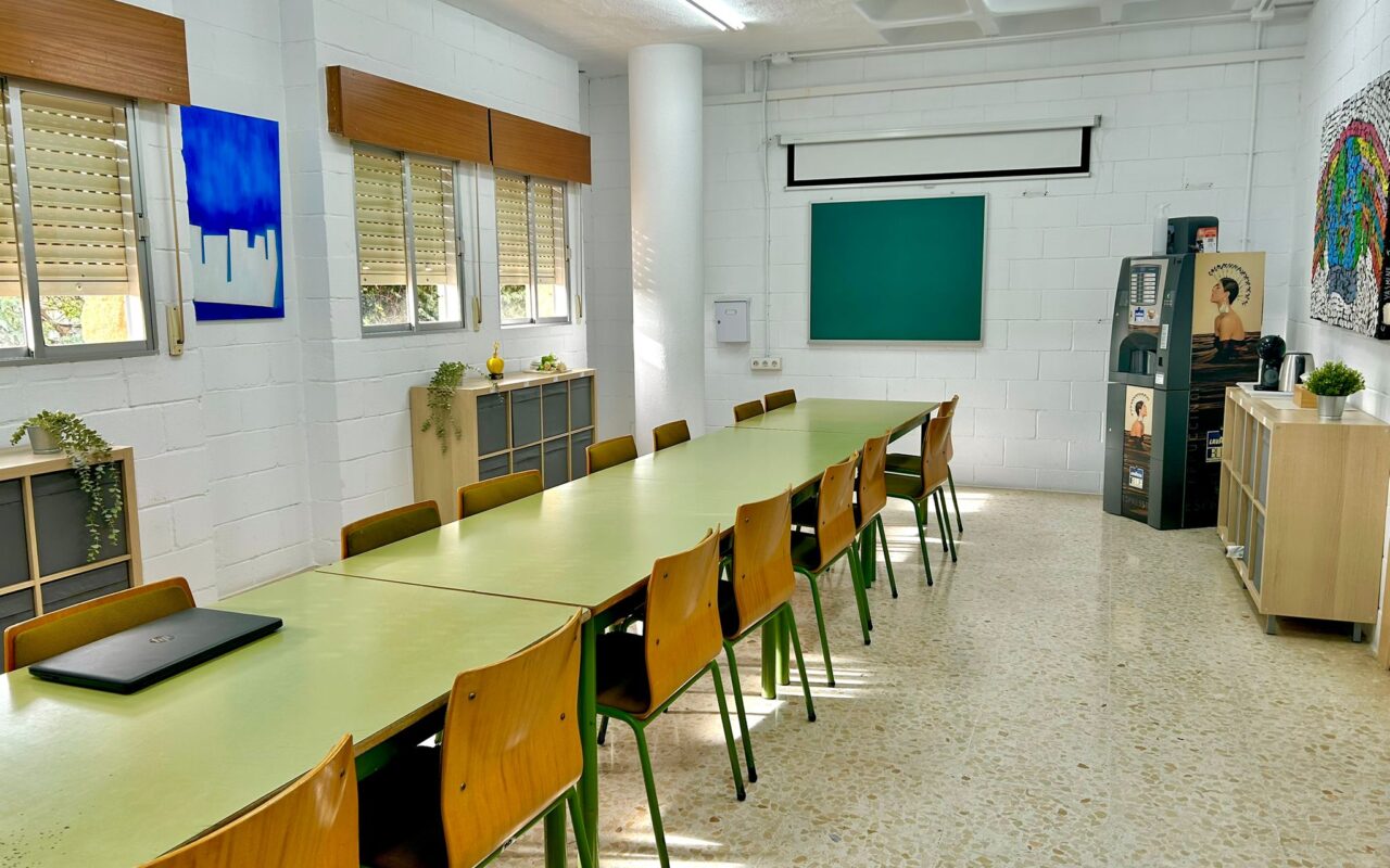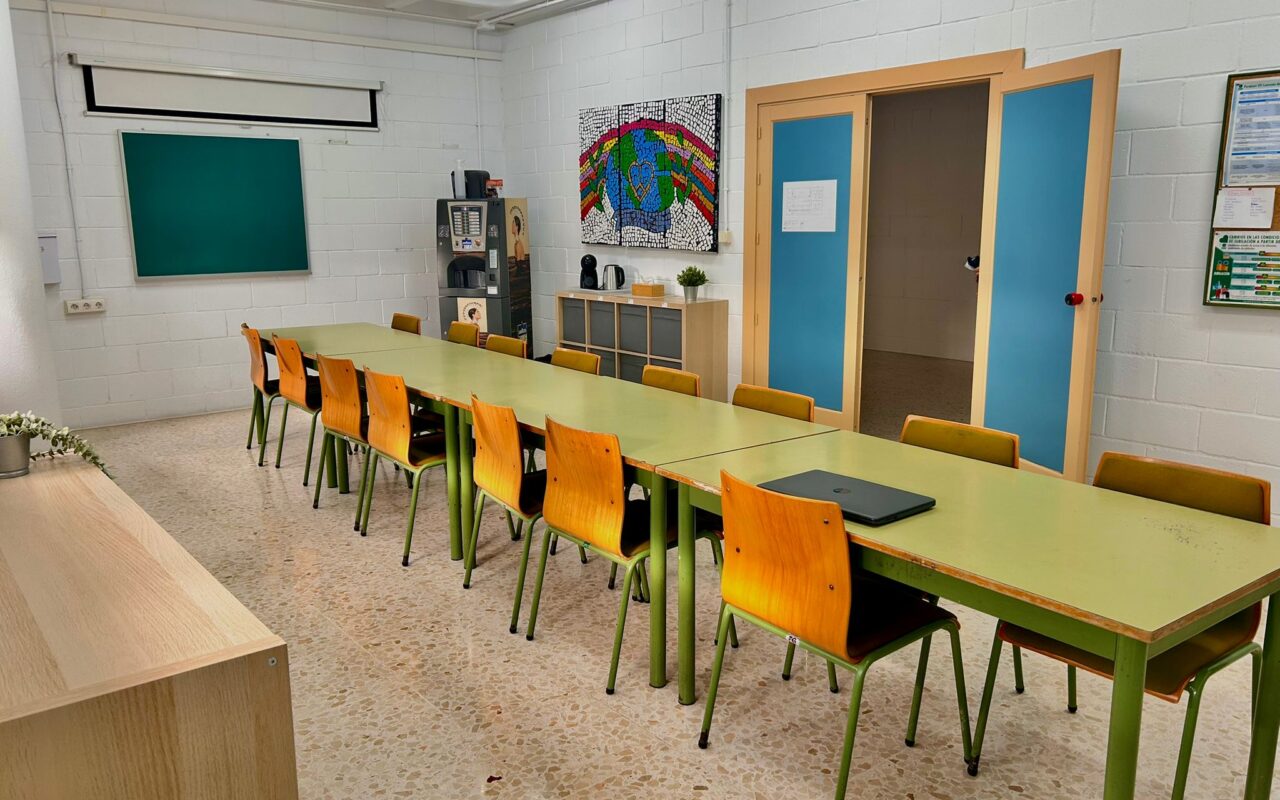 Sala donde los maestros y personal externo que venga a nuestro centro pueden descansar y tomar una bebida caliente. Consta de dos ordenadores para trabajo personal.
